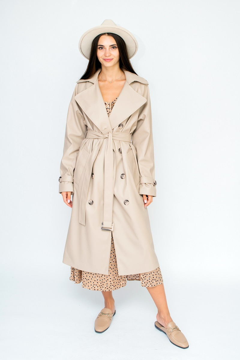 Жіночий тренч бежевий з екошкіри 22153 (2000000083834)