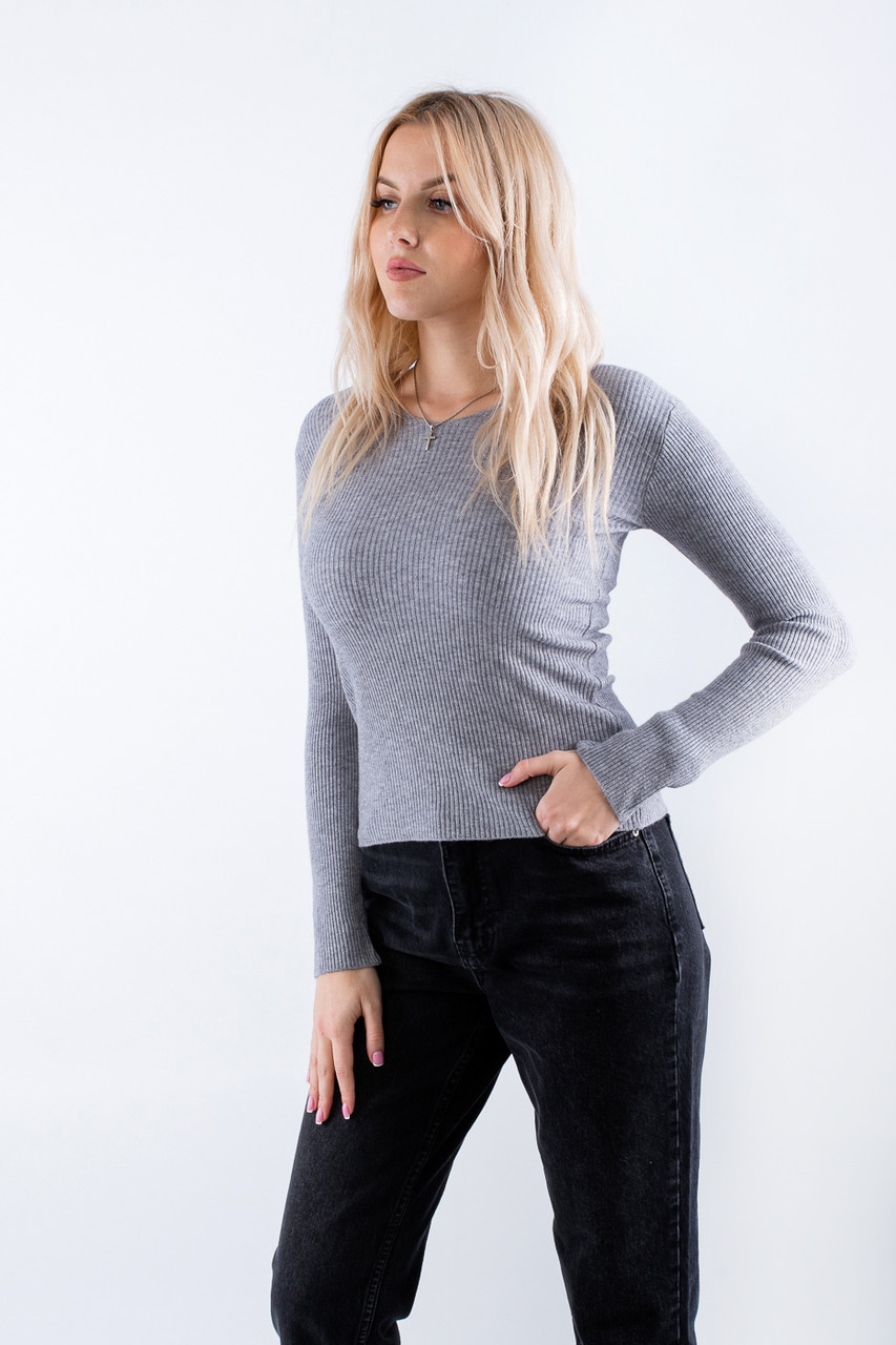 Пуловер в V-вирізом в рубчик сірий 65004 ONE SIZE (2000000119854)