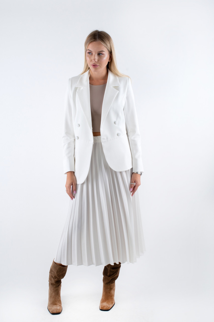 Костюм з прилягаючим піджаком та спідницею плісе білий 40202 (2000000135915)