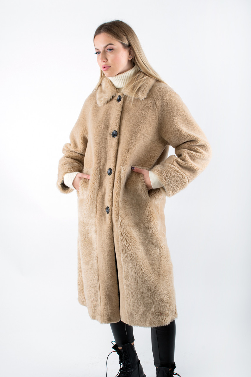 Шуба з еко-хутра світло-бежева 957 (2000000138503)